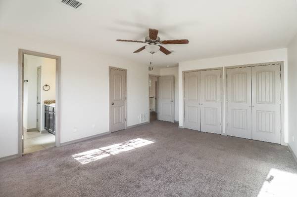 The Ventanas are surrounded by 4 parks that can be used for dog walks or playing with the kids. Home is equipped with 2 living areas. One can be used as a formal living or separate large dining room. Enjoy a functional kitchen with stainless steel appliances, lots of storage and a pantry. Cabinets have wired under-cabinet lights that highlight the granite countertops and backsplash. Primary bedroom has room for plenty of clothes and shoes in the his and hers master closets. Enjoy your personal ensuite with double sinks, soaker tub and shower. Step out onto your own balcony that overlooks your own personal hideaway with pergola, artificial grass and fire pit. The upstairs has two more bedrooms and a wonderful bonus room that can be used for virtually anything. Did I mention the house comes with solar panels? Wow!