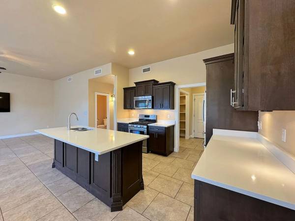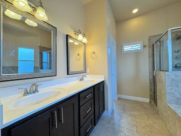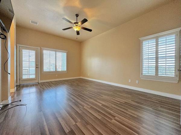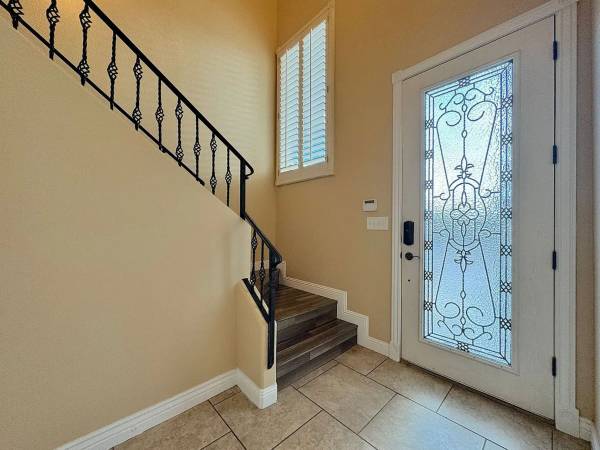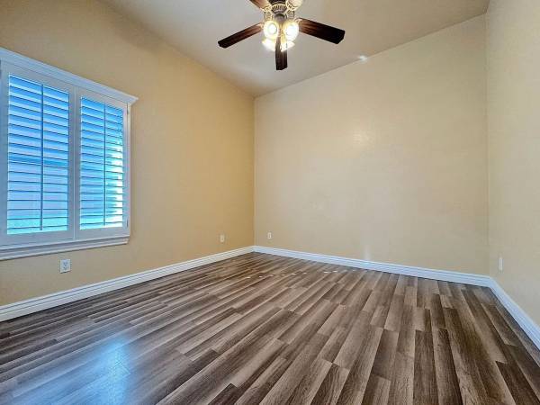 Features large open living areas and shutters throughout the home. Kitchen overlooks the living/dining areas and offers an island, stainless steel appliances and walk in pantry. Retreat to the spacious master suite with full bath, walk in closet and balcony. Out back you'll find the low maintenance yard with covered patio and synthetic grass