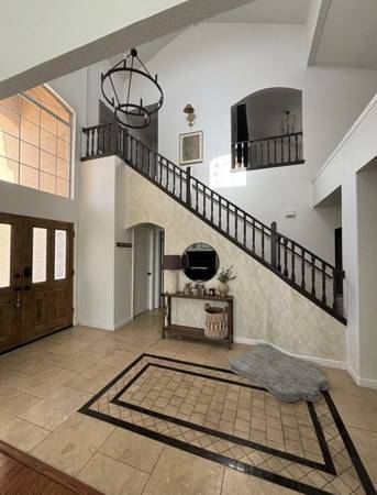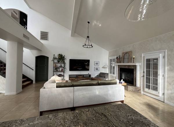 Lovely, recently remodeled 2-story executive residence in Chaparral Park. This home features 3 bedrooms plus 1 large loft/office with custom bookcase, 3 full bathrooms, 2 large living room dining room areas, sun room, hardwood and tile floor throughout, REFRIGERATED AIR, shutters throughout, living room with fireplace, breakfast area, kitchen with tons of cabinet space, granite counters and appliances including refrigerator, dishwasher, gas stove and microwave, covered patio, pergola with an outdoor kitchen and 2 car garage! Relax and enjoy the sounds of the outdoor fountain, play basketball on the large court area or enjoy coffee on the outdoor balcony. Convenient to Lundy, Hornedo and Franklin, shopping and restaurants.
