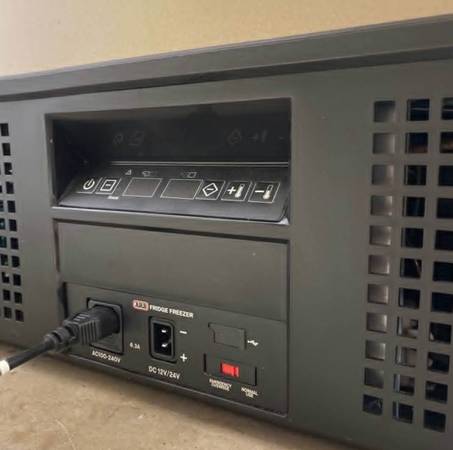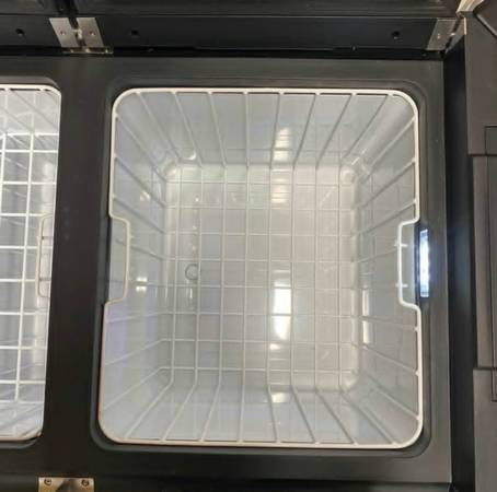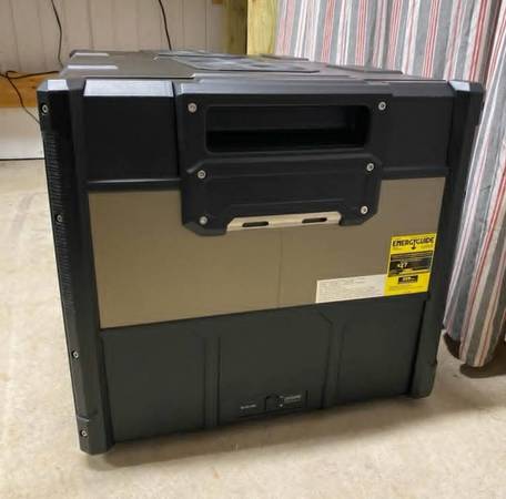 Has two separate compartments that can be used as a fridge and freezer, or both as fridges depending on how you set it. Runs off 12V, 24V, or standard AC power.
