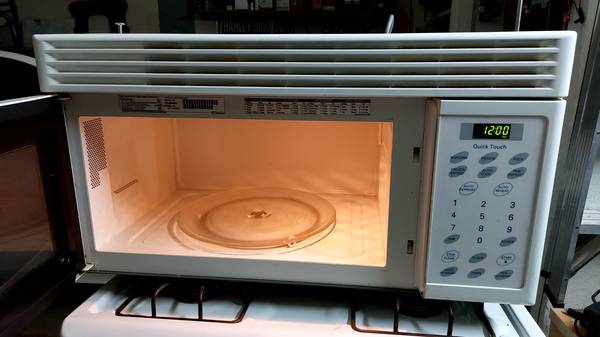 Microwave Brand : Oasis Over the Range, White in color Turn Table Cooking controls Cooktop lighting 1000 Watts 2 Fan speeds In excellent condition