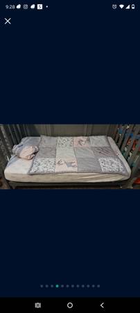 Sturdy, baby crib with mattress that turns into a toddler bed or day bed. Two cover sheets and a small comforter included. Comes with all screws. Northeast area near McCombs and Sean Haggerdy. Cash...