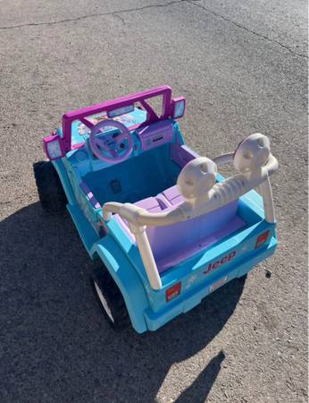 Used Frozen jeep. Still works and comes with charging cable for the battery. Plays songs from the movie as well.