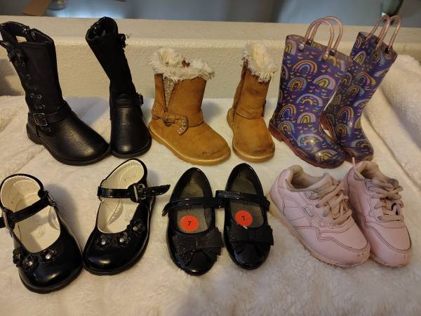 6 pairs of shoes for only $30. Purple rain boots light up. Northeast area near McCombs and Sean Haggerdy. Cash only.