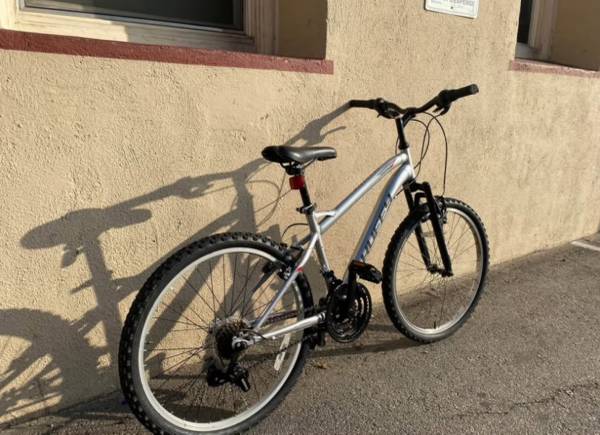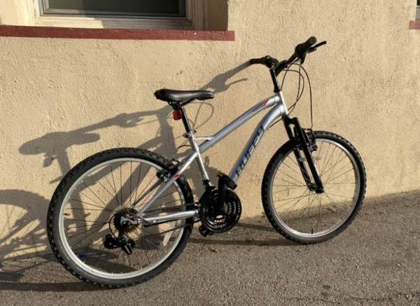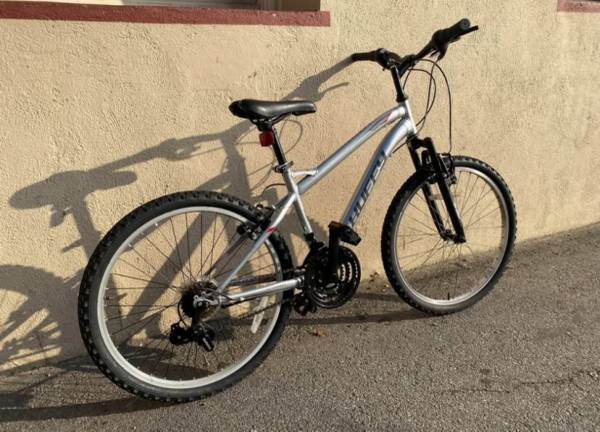 Trail bike huffy highland silver frame Everything works is ready to ride