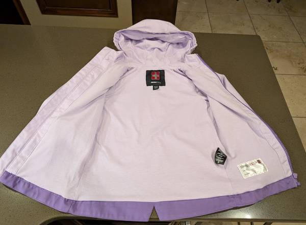 This is a Swiss Tech Girls Lightweight Jacket in a size 5T featured in Purple. Perfect jacket for those chilly mornings but warm days. These are some of it's features: