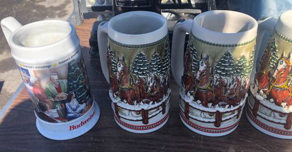 Budweiser Steins and Beer glass mugs $10 each cash firm as-is