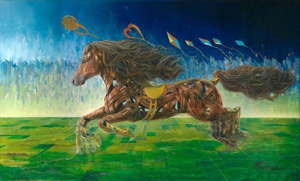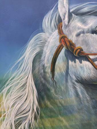 His pieces on hand range from 57x41 to 59x98. Each painting has been signed and come with a certificate of authenticity that includes recognition for resume, awards and exposition participation.