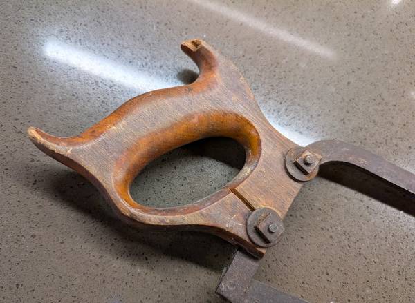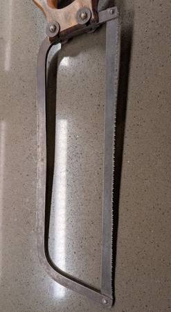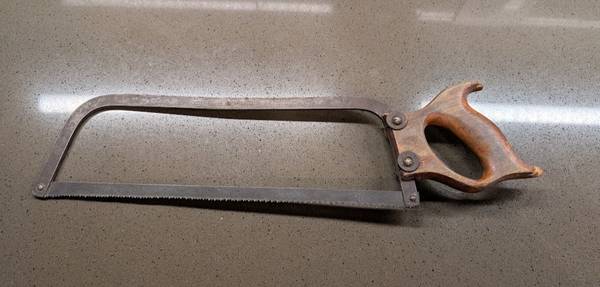 This is an Antique, Vintage Bone / Meat Butcher Saw that measures approximately 18.5" long and would be a great addition to any Farmhouse / Rustic decor. The blade is still sharp and it has a great aged look to it. It's in GREAT condition for it's age. Located on the west side.