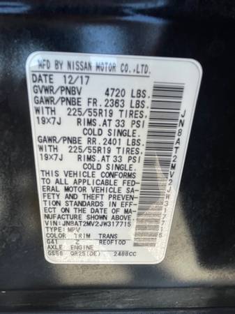 2018 Nissan Rogue SV AWD ☎ Call or Text Exterior color: BLACK Engine: 2.5L L4 DOHC 16V Mileage: 247,586 Stock Number: 5370 Fuel: Gasoline Transmission: Automatic VIN: JN8AT2MV2JW317715Asking Price:...