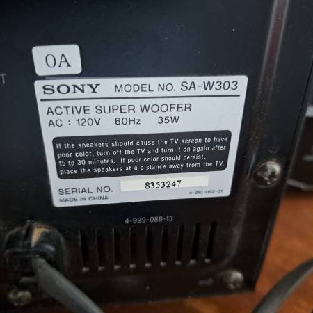 Sony Bravia Home Theater System with receiver, woofer, four small wired speakers and one medium wired speaker. Approximately 10 years old, but still works great. Has some wear on selection buttons,...