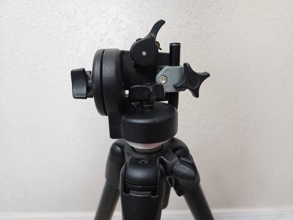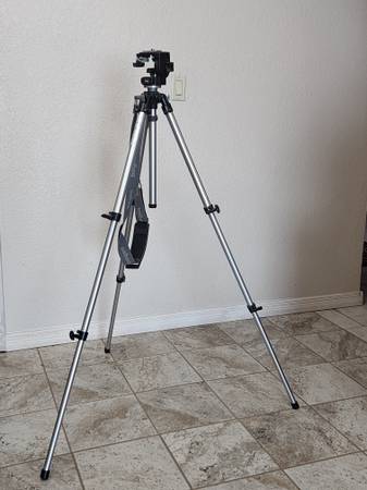 Bogen Manfrotta made in Italy #3130. Aluminum silver legs. Adjustable from 25” - 62” height (without extension column) Includes carrying strap, manual and an extension for column (pole on floor in photo of the two fully open tripods). Weight = 6.0 pounds. $50.00