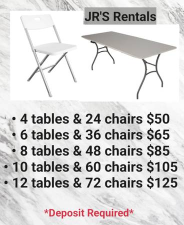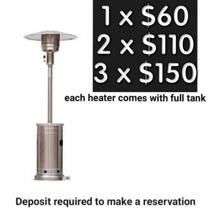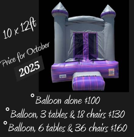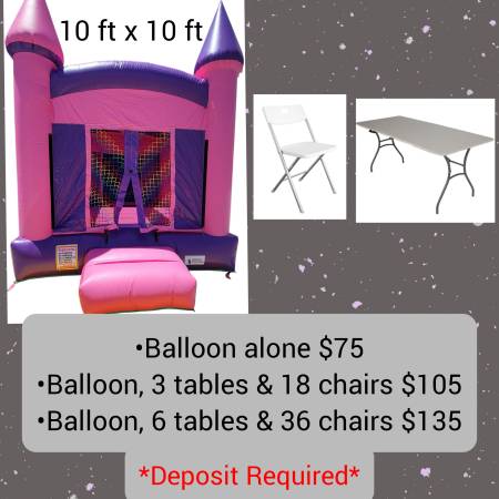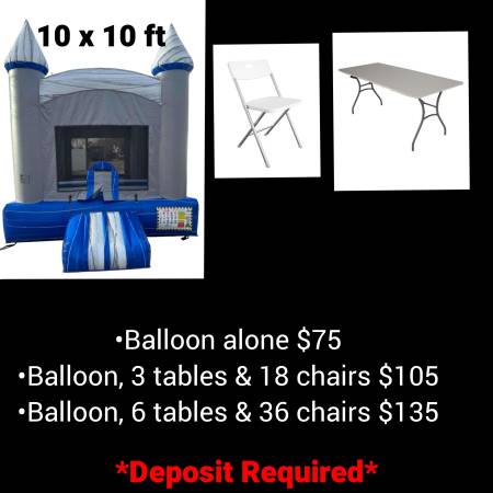 We have heaters, jumping balloons, tables & chairs for rent. *Non refundable deposit required* We don't service NE, Westside, Montana Vista & Ascension. Prices may vary depending on location...
