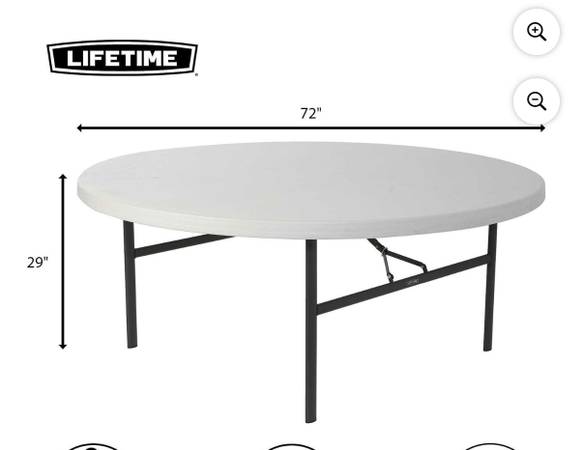 72” round tables Round folding tables, $175 each. Each table includes one (1) black 90” round table cloth. Set of eight (8) tables includes storage cart if purchased together. Tables measure 72”...