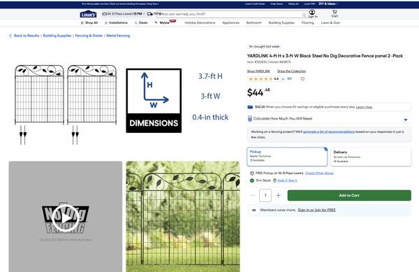 Metal fence panels, 3.7-ft. H x 3-ft. W, 6 panels available (2-green, 4-black), interlocking, easy to make an enclosure or to use as a barrier to block off an area, great to keep pets or kids safe,...