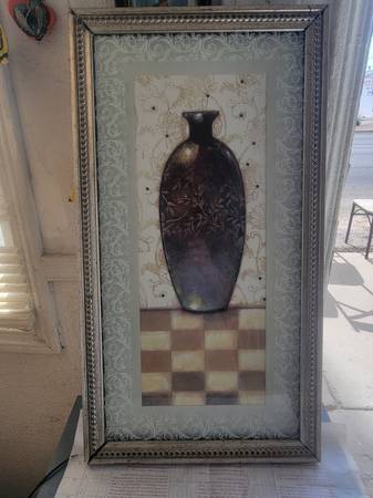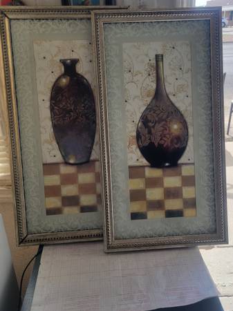 PAR DE CUADROS DECORATIVOS, UNO DE ELLOS TIENE UNA CRAQUEADA EN UNA ESQUINA COMO SE VE EN LA FOTO, MIDEN: LARGO:14" ANCHO:1" (GRUESOR) ALTO:26"