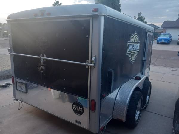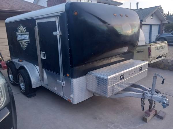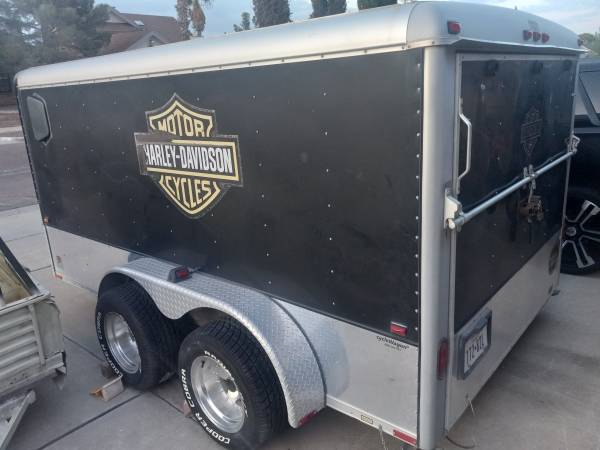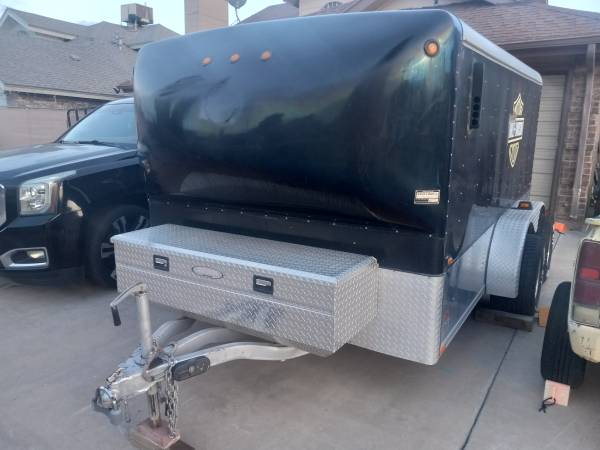 Motorcycle lowprofile enclosed trailer 7x12 with title registered under my name with TX plates for all year 7000 lbs weight capacity has 15x10 rims and 295-50-15 brand new tires I can do 6000 dlrs with original stock rims and without tool box call show contact info