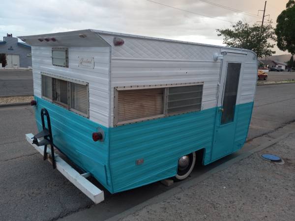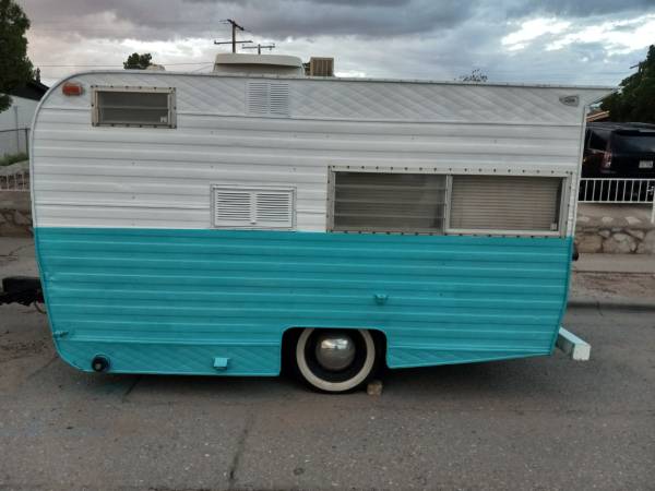 Vintage travel trailer 7x12 year 1972 cardinal bill of sale only registered under my name with TX plates for all year has new tires has refrigerator gas stove sink toilet king size bet and twin bed...