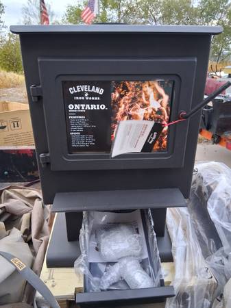 Wood Stove Heats up to 2,000 sq ft Brick lined firebox Cast Iron Door with Fire viewing area 11.25"w. X 7.75"h. Brand New Still in Box Call/Text )