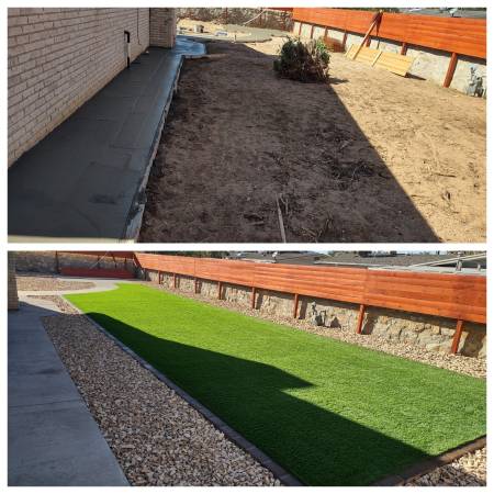 I do any type of landscaping work we do renovate yards good quality materials and job free estimates for more information contact me at ..para español ..