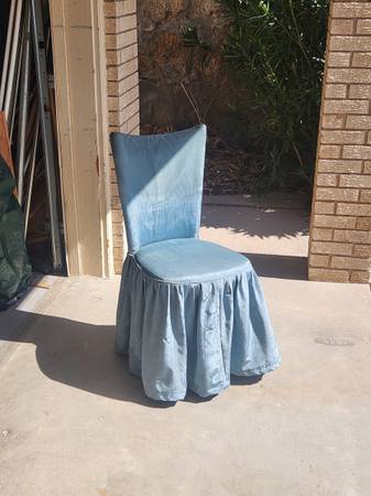#2. 2- Blue Occasional Chairs -Swivel Very Good Condition......$ 45.00 for the Pair #3. Teal color Cushioned Chair-Wood Frame ..................$ 10.00 #4. Small wooden Chair with Blue Skirting...