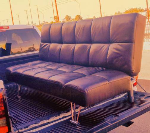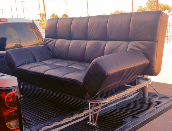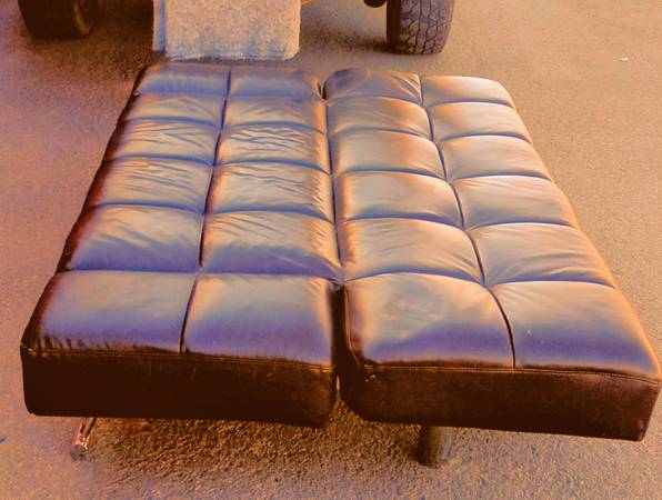 Very comfortable for sitting and laying down. Dark brown leather in pretty good condition. Opens up to 46 in wide by 6 ft long. 9l5 248 l923 (call or text)
