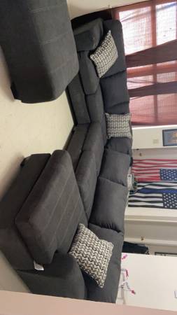 •Grey Sectional couch used for less then a year needs to be cleaned in storage for 3 years comes with ottoman $600
