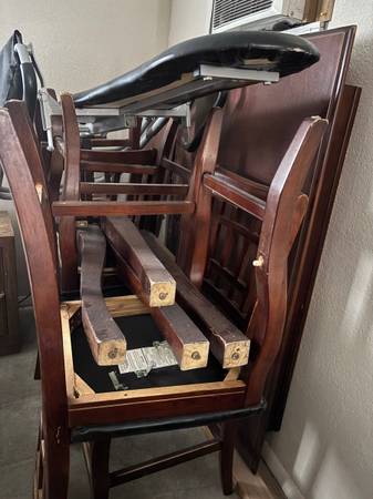 • 4-6 chair (2 are semi broken) wear and tear on seats tall kitchen table with leaf $60