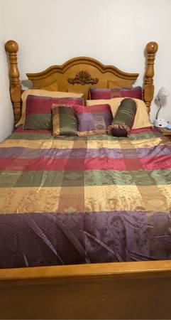 •Solid wood queen size bedroom set (bed frame, chest dresser with mirror, 2 2 drawer night stands) $1,200