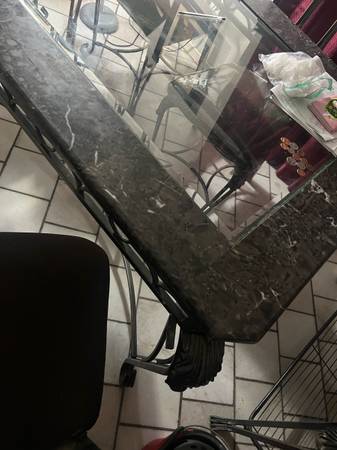 Five piece glass/grey marble dining table