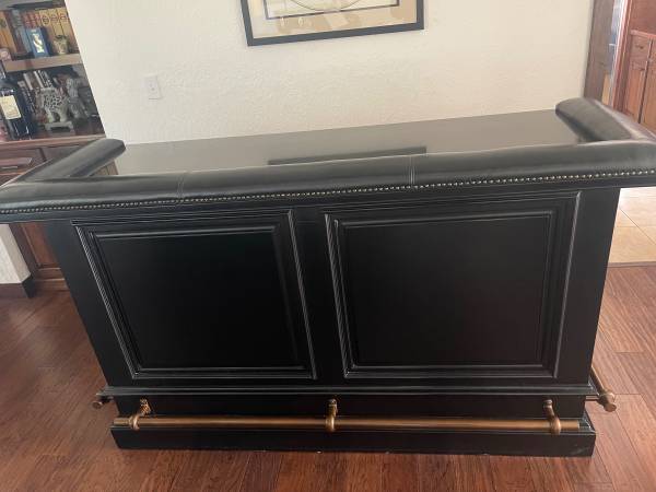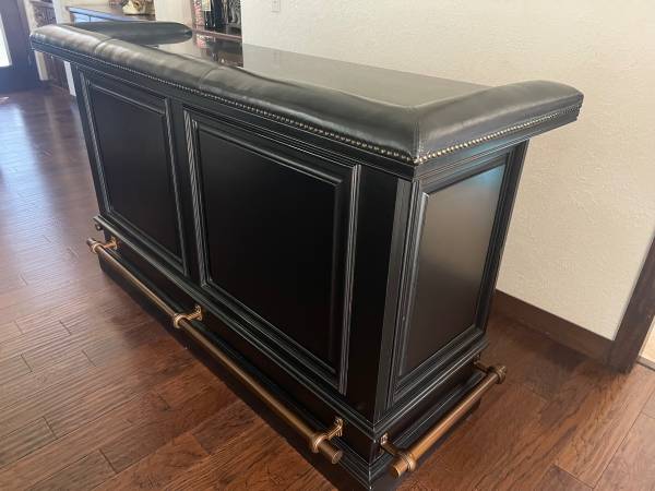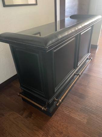Pottery Barn Home Bar in transitional style, somewhere between traditional and modern, formal and casual. It is very functional. It has ample storage for wine bottles and other beverages of your choice, stemware and bar ware. Perfect for the center of your entertainment area!