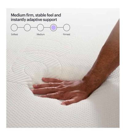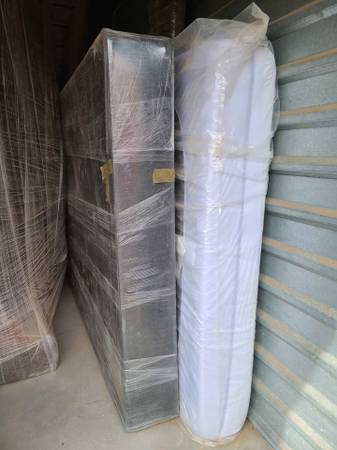 Originally Costed over 1k, just 1yr old. Includes boxspring & frame, boxspring and frame are not what's shown in the first pic, but box spring is in the pic showing it's wrapped up. Frame is shown with the metal bars disassembled.