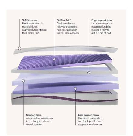 GREAT PRESSURE RELIEF + COMFORT - Purpleās exclusive GelFlex Grid and Comfort Foam gently cradle the body and alleviate discomfort.