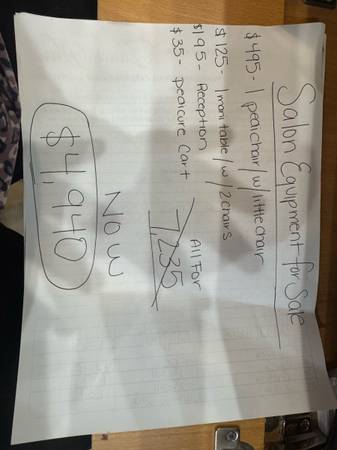 Salon equipment for sale 7 pedi chairs + 1 free pedi chair 8 mani tables 1 reception 8 pedi carts FREE NAIL DRYER MUST PICK UP
