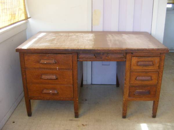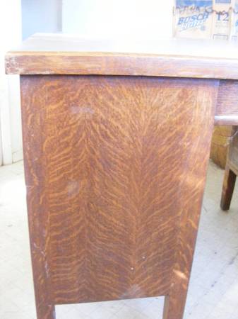 Tiger Stripe Vintage oak desk. Extra large hidden keyboard tray. Solidly built of oak and other hardwoods.