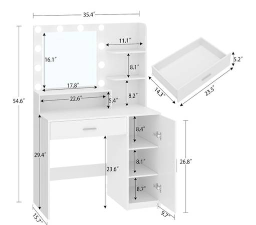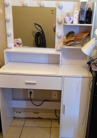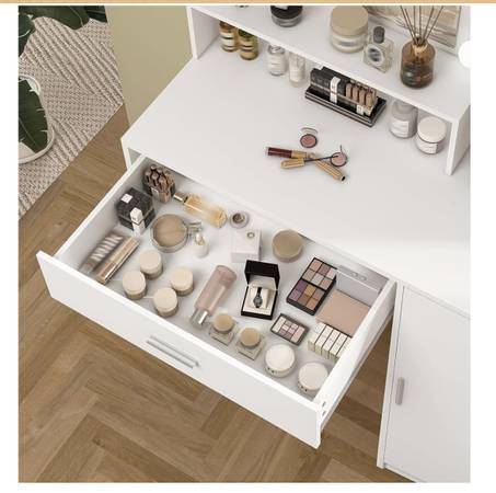 White vanity with a drawer 3shelves and 3compartments.price negotiable
