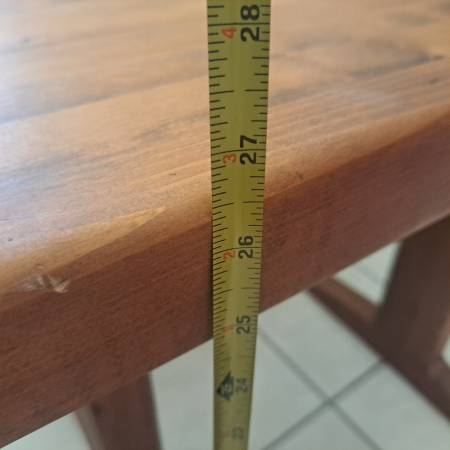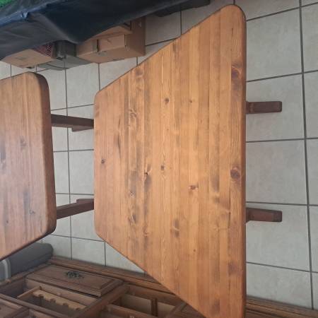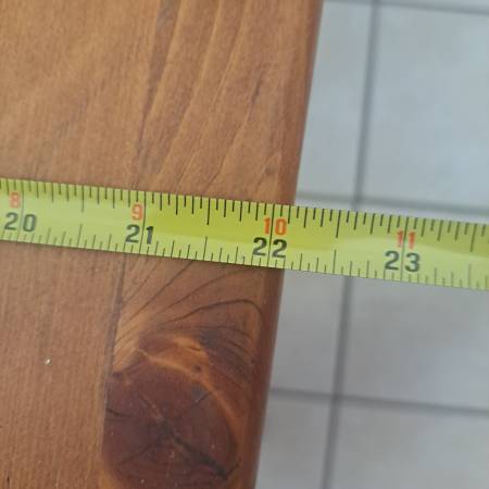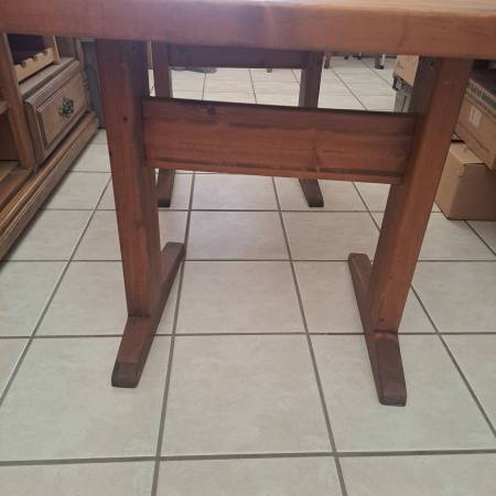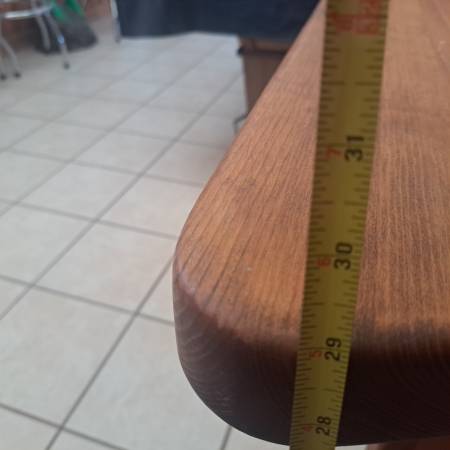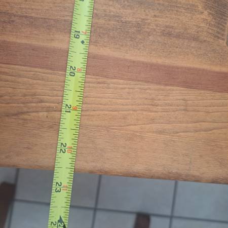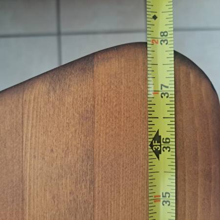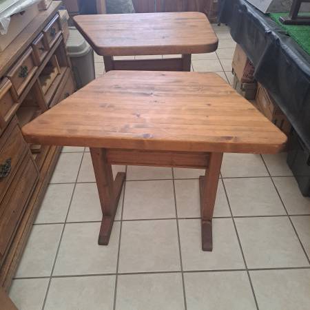 Two solid wood butcher block desks. Both are different sizes and shapes. Beautiful solid wood. Larger desk is 29 inches tall with a rhombus shaped top. The top is 34 1/2 inhes at the longest point and 25 1/2 inches at the shortest and 22 1/2 inches deep. The smaller desk is 26 1/2 inches tall with a trapezoid shaped top. The top is 38 inches at the longest point x 21 1/2 at the shortest x 22 inches deep. $45 each or both for $80.
