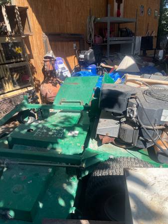 Selling heavy duty John deer driving Lawnmower needs new plastic gas tank battery