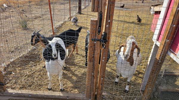 4 - 7 months old kid does $150/each, 4 - mother goats still being milked $225/each, 1 2 year old buck $300