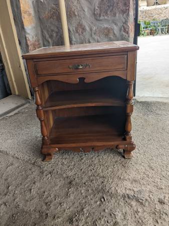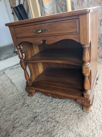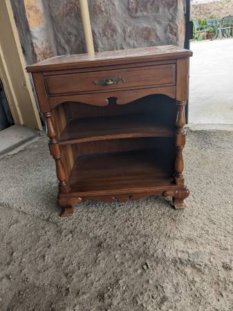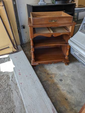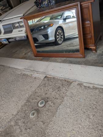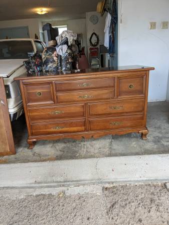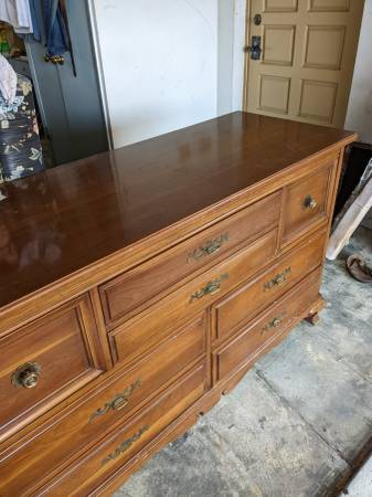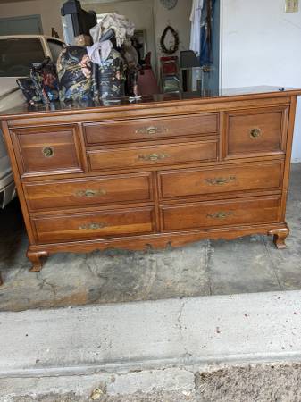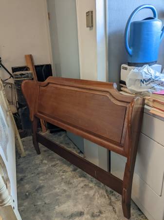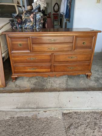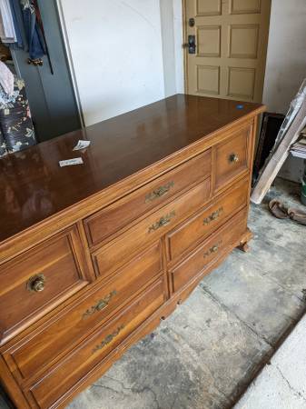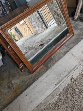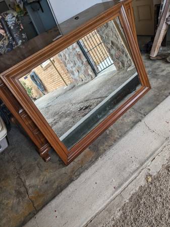 cherry wood full size bedroom set consists of bed frame headboard, night stand, dresser and mirror. $500.00 obo Please call no texts