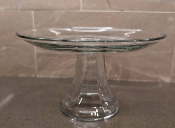This is a Farmhouse Dessert Glass Pedestal Display that would look perfect in any kitchen, buffet or dining area. It's a great way to display your goodies on your counter or for a party. These are the measurements: