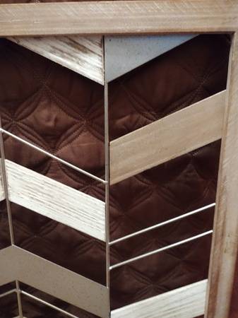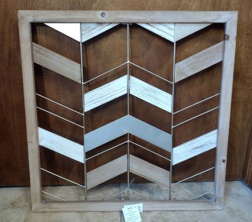This is a NEW Lazer cut wood and metal frame that would be a great accent to any room in your home. Made of distressed wood in several different natural colored stains with distressed metal accents and steel metal piping throughout. It measures 24" x 24" and is in NEW condition with no stains, chips, cracks or damages. Have two (2) available. Located on the west side.