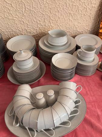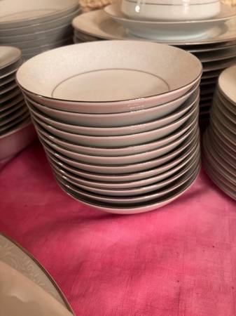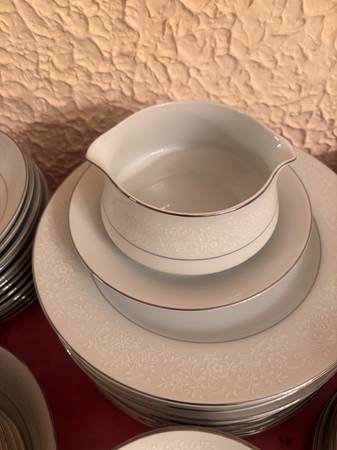 Selling this complete set of Royal Wentworth “Christina” (pattern 51/214) Fine China Set This pattern features white on white flowers & silver trim & accents. Set includes 11 settings: -...