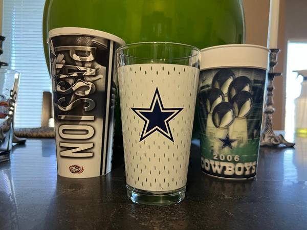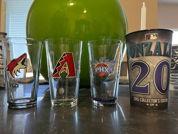 Hello, for sale are drinking glasses, plastic cups, popcorn buckets and coffee tumblers from various sports teams. If interested feel free to text or call me at nine one five three four eight zero six four eight show contact info