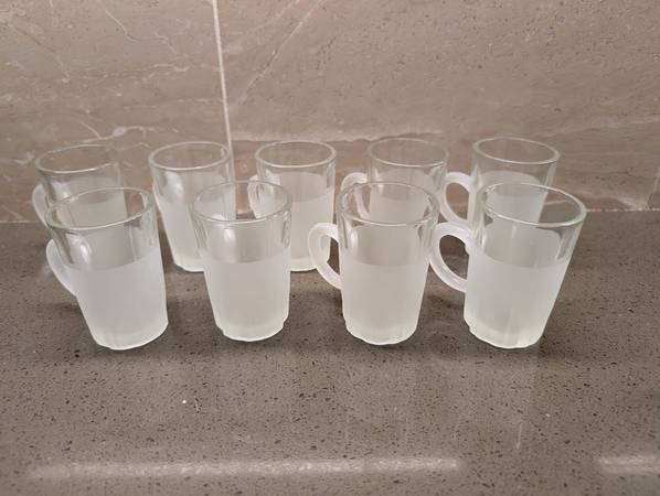 This is a set of twelve (12) Vintage Mini Beer Mug Frosted Shot Glasses with handles. This set would be a great addition to any Bar or Drink station, especially for the upcoming holidays. Each one measures 2 3/4" tall x 1 3/4" in diameter and hold about 2 ounces. They are in EXCELLENT-NEW condition with no stains, chips, cracks or damages. Located on the west side.
