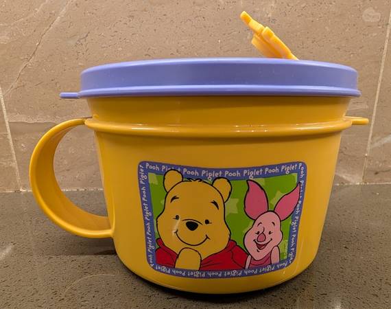 This is a NEW Tupperware Microwaveable Vintage Winnie The Pooh and Piglet Vented Soup Cup collectable. This reheatable Crystal Wave Soup Mug goes from refrigerator to microwave to table to dishwasher. It has a 16 ounce capacity with all the popular attributes of Crystal Wave. Here's some of it's features: