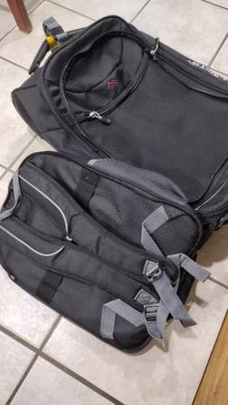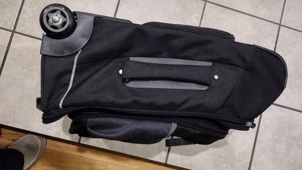 You can carry the whole bag as a backpack. Or just roll the 22" cabin bag. An added backpack can be zipped off from the front of the bag. The bag is kept in Santa Teresa NM which can be picked up there or I can bring it to work on Teramar Way, El Paso.