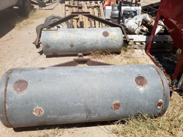 shop-made compactors, one tank is 66 inches long x 24 inches in diameter and the pole is 77 inches wide x 40 inches long. the other is 63 inches long x 20 inches in diameter and the pole is 72 inches wide x 40 inches long.
