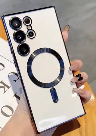 Magnetic Back Phone Case for Samsung S25 Series, S25 Ultra Series and S25 Plus Series. Clear TPU with Black Outline and Electroplated Frame, Slim Protective Cover