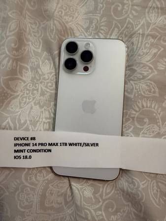 iPhone 14 Pro Max 1TB Silver/White. iOS 18.0